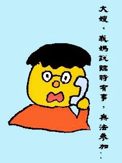 結果我媽說,跟我堂哥出去很累耶(因為跟他出去一切都要聽他的,否則他會生氣)!所以她不要去,也叫我不要去!所以呢!我就打電話給我的堂嫂(我都稱大嫂),說我們臨時有事,無法參加!