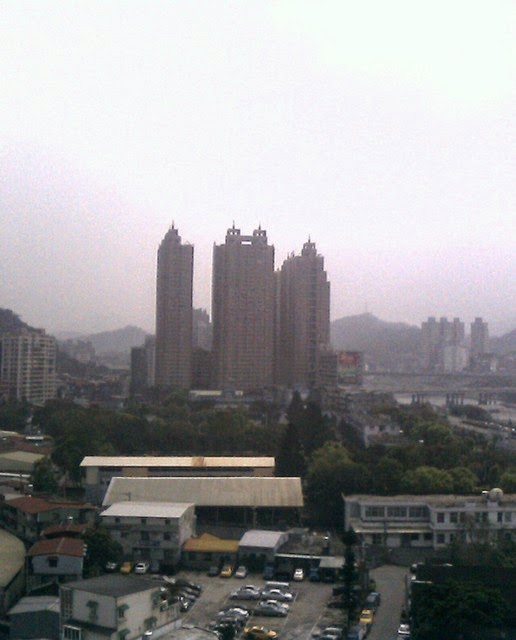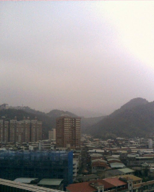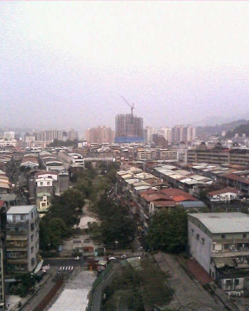 工作累了,真的沒有同事可以聊天,所以就到頂樓去看看風景,順便拍了一些照片!  以下這張其實是在七樓往外拍的!而且也是在加班的日子,那天可是小雨,而不是像昨天是陽光出來,但也是陰陰的天氣。
