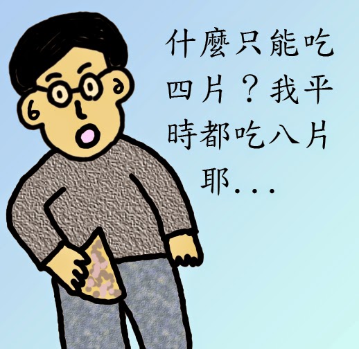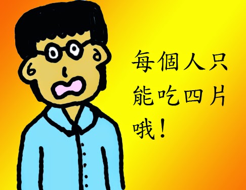 結果有一個同事說,什麼只能吃四片哦?我平常都吃八片的耶…。