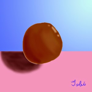 自發性的做作業耶,真認真^^以下是幾個建議點:1.影子可以再稍微拉往右邊一點(目前看起來有點漂浮感),影子形狀可以改成橢圓形(光線的斜射,影子會變形)2.影子跟物體之間有一條亮線怪怪的(通常物體跟影子間用色調來做區分效果較佳)3.物體暗面最邊邊通常會有一些接觸面的反射光(也就是說這張圖片的球最左邊不會是整顆球最暗的地方,而是可以帶點粉紅的暗色調來處理)加油加油^_^ 讚讚