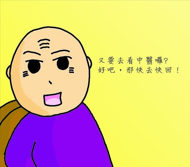 我爸就說,又去看中醫?看了一下我的狀況,就說好吧,你去,快去快回~~(可見我很體弱加多病~~