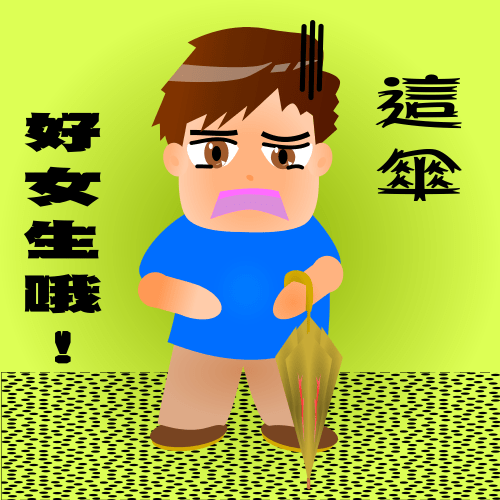 這雨傘~~~ 發表時間 西元2014-12-09西元2020-05-29 by tobitsao 最近跟我媽一起出門在回家的路上,本來我們還在開心的邊走邊聊天。 突然我媽對我說她的雨傘忘了拿! 做兒子的當然要說,我回去拿囉!(雖然百般不願意〔誤〕) 結果拿到後馬上後悔了,因為也太娘了~~~ 分享此文: 分享到 X(在新視窗中開啟) X 分享到 Facebook(在新視窗中開啟) Facebook 喜歡 正在載入... 相關 發表者:tobitsao 檢視 tobitsao 的所有文章